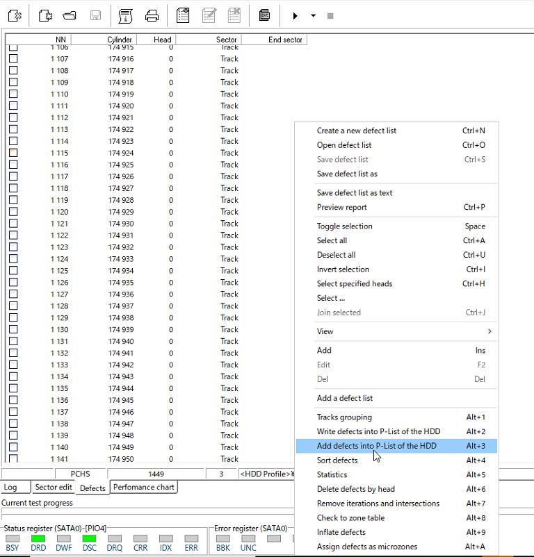 如果我们看到缺陷数量越来越大,很明显这就意味着头和表面越来越差,恢复这种驱动以进一步使用没有意义。