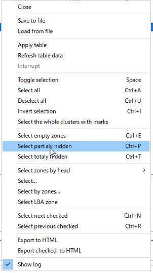 右键单击表格并选择“选择部分隐藏”(Ctrl+P)。