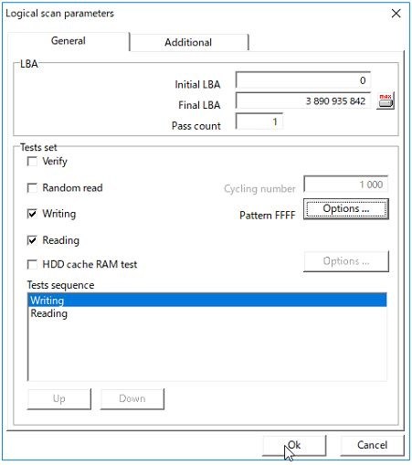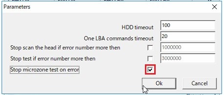 并选择“在错误上停止微区测试”复选框,以减少读取不良区域的尝试: