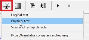 接下来,我们需要检查表面的物理状况。按下表面测试按钮,选择物理测试: