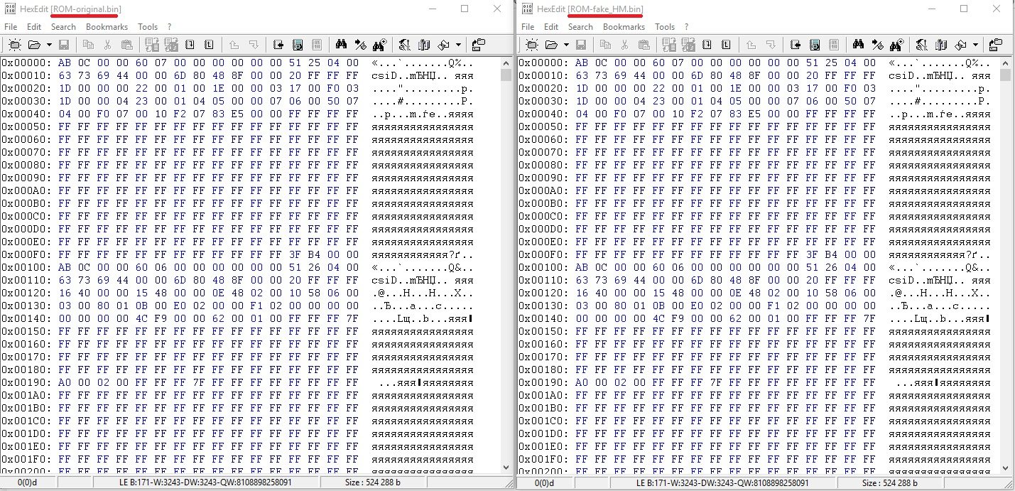 然后使用HexEditor打开两个保存的ROM映像。