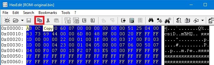 选择原始ROM的全部内容(使用“Ctrl+A”)并复制它:
