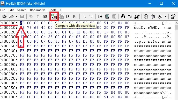 转到您打开的修改后的ROM映像,然后单击“与剪贴板数据进行比较”。